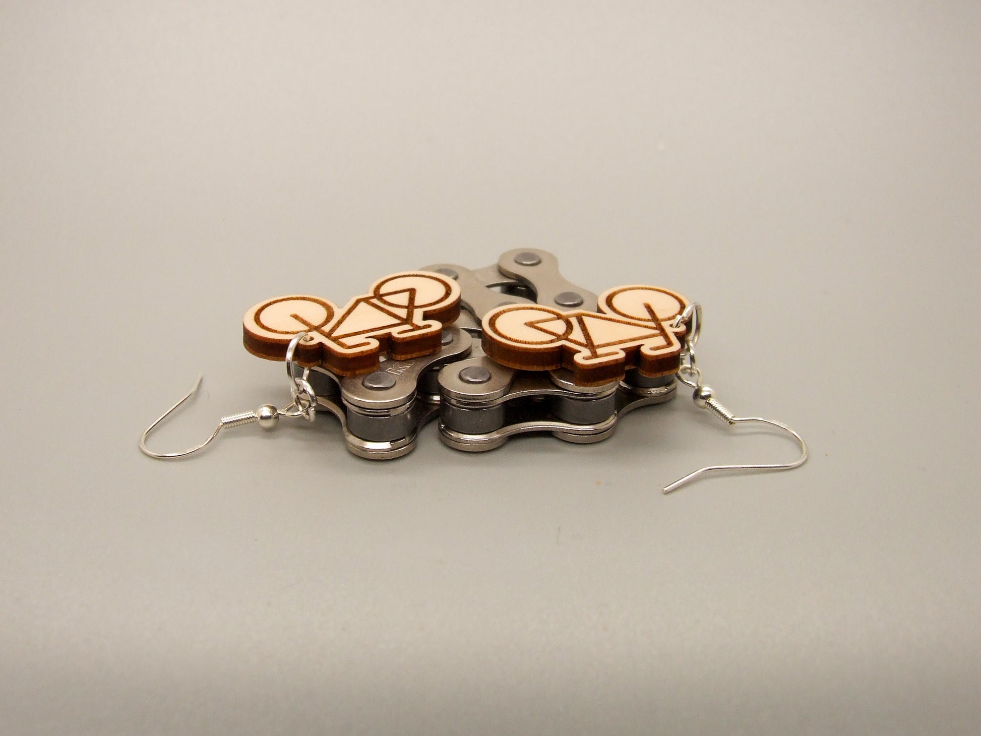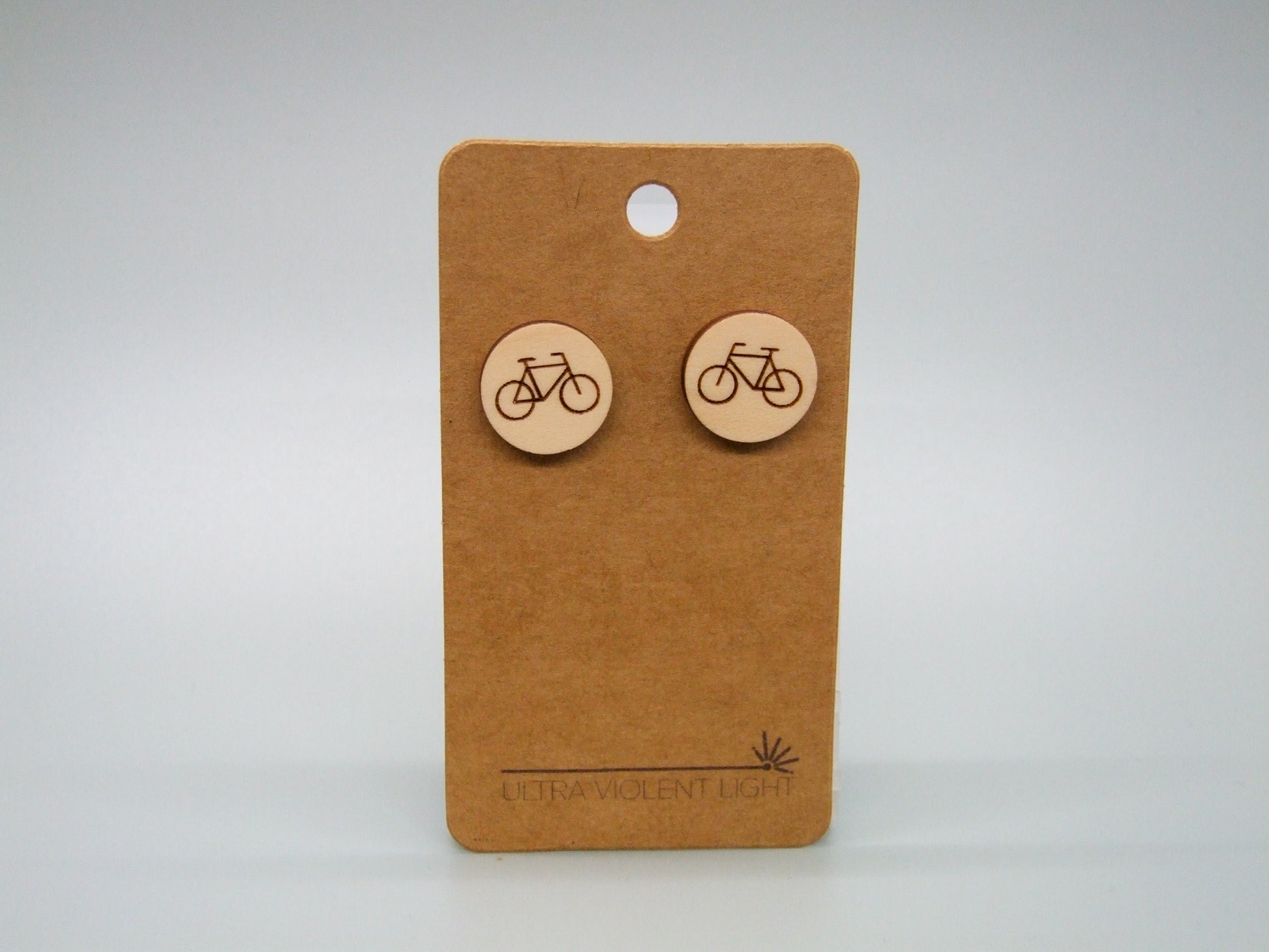 A bike is laser engraved on finished maple plywood. Choose from hook or post earrings.