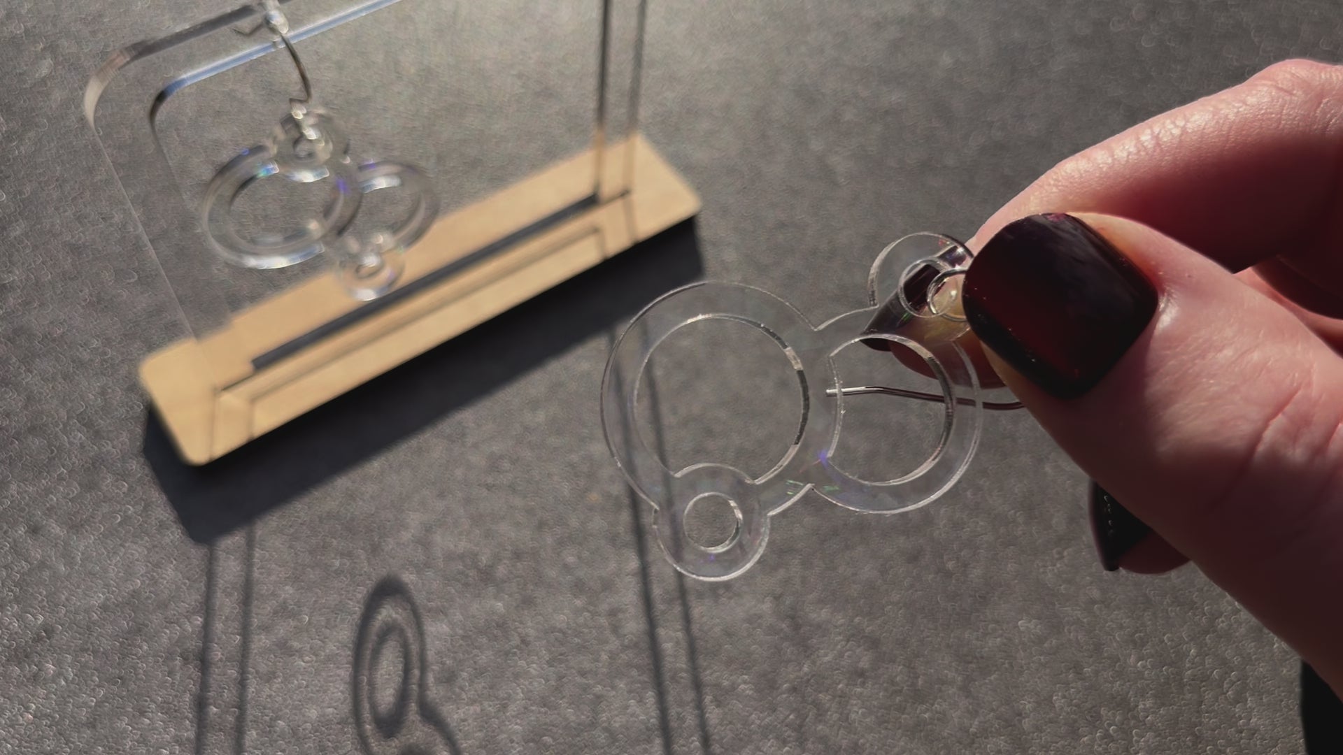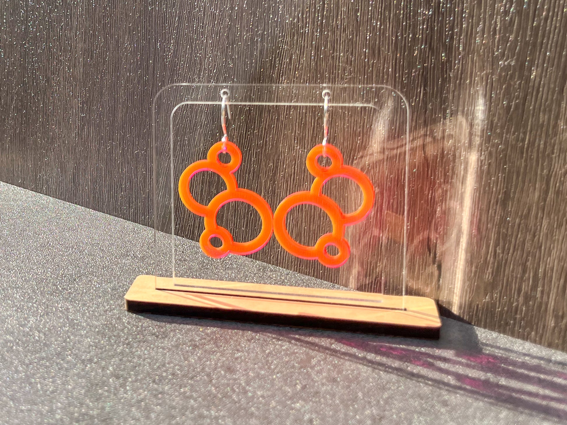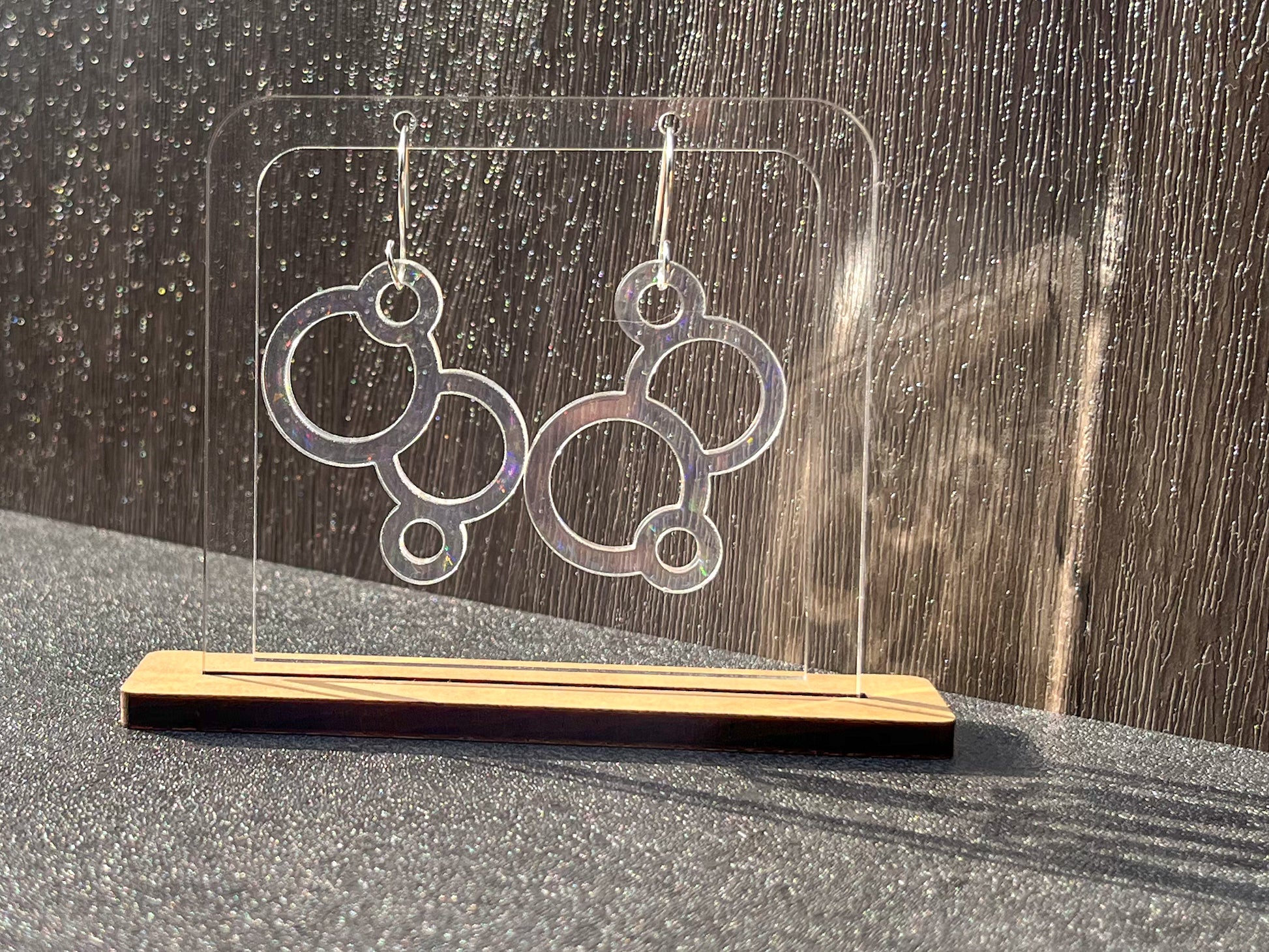 These bubbles transparent acrylic . They are attached to surgical steel hooks, great for sensitive ears.