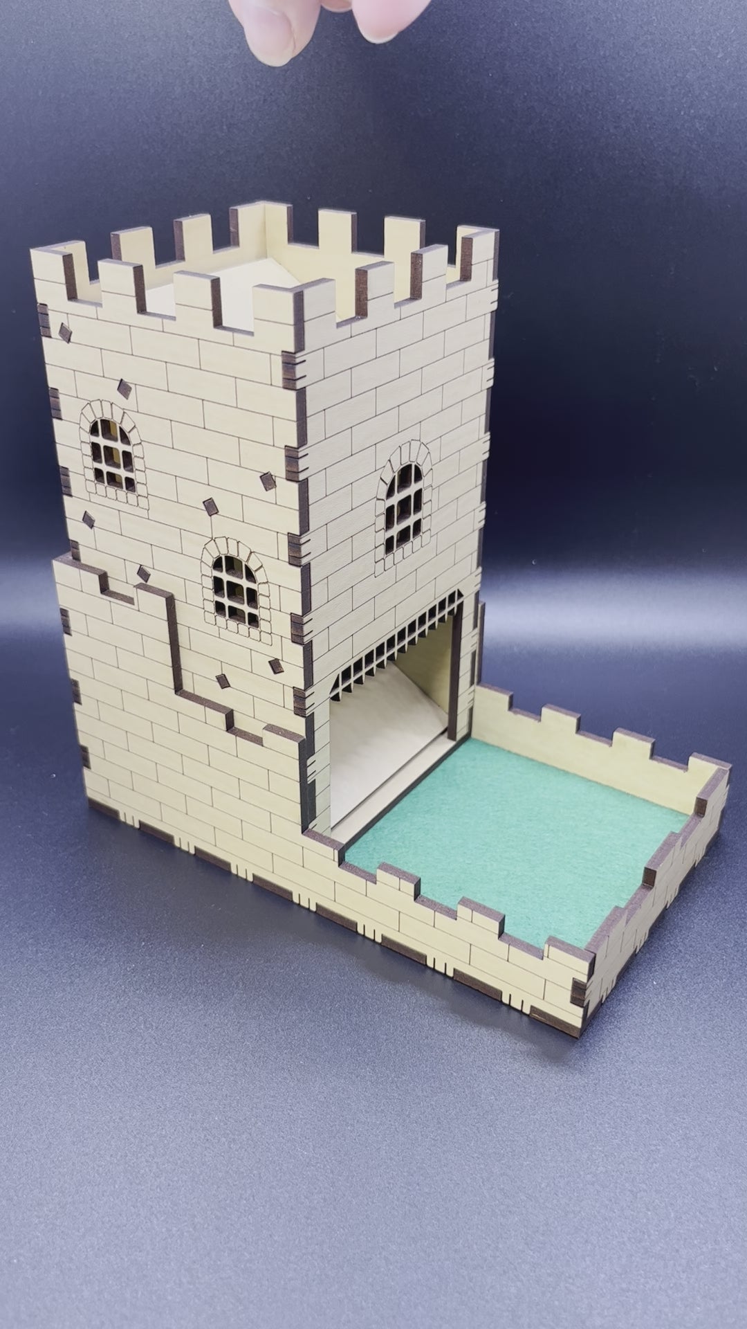 Keep your dice rolls from rolling onto the floor with this dice tower. It's laser cut from eco-birch wood, with a felt lining on the base to muffle the sound of the dice landing.
