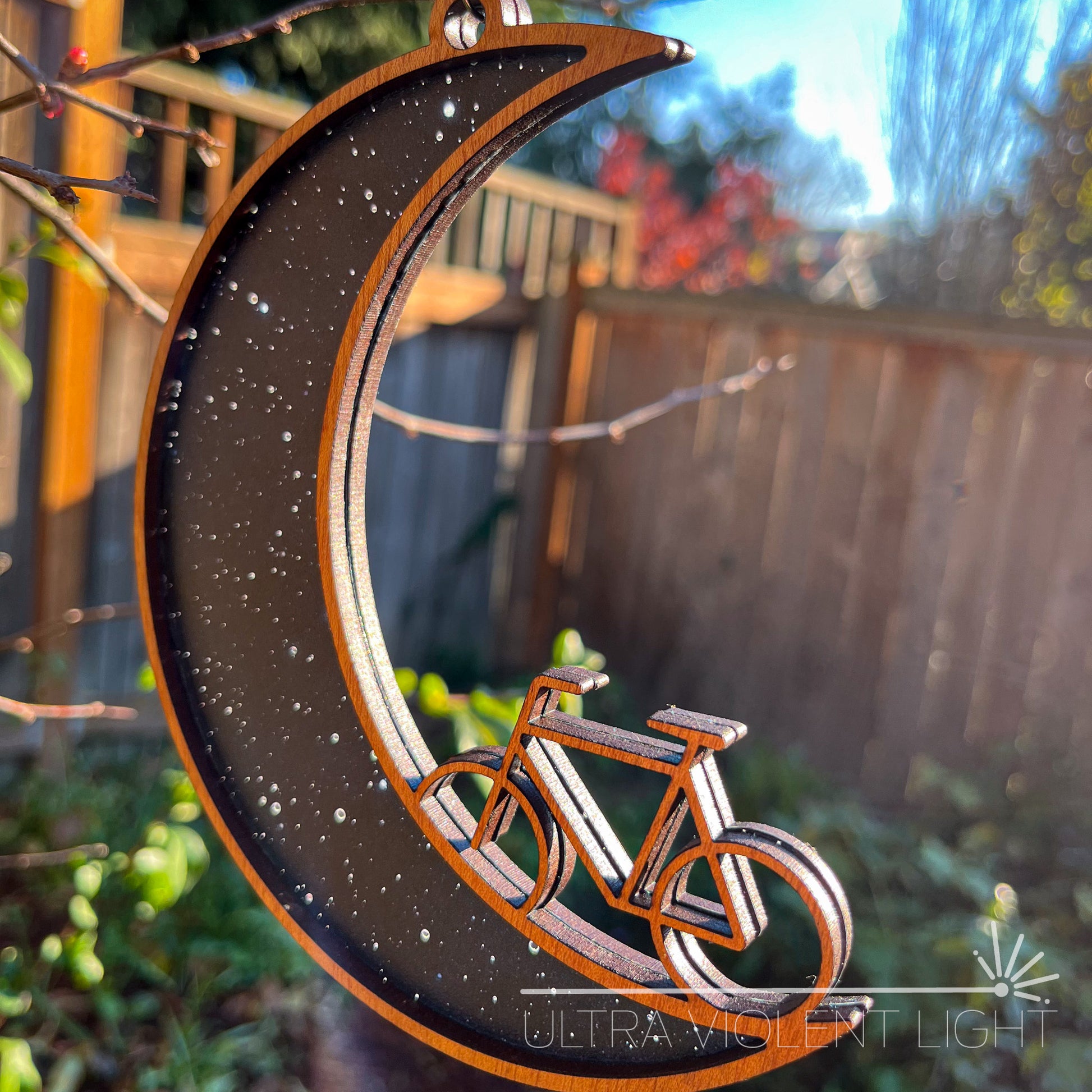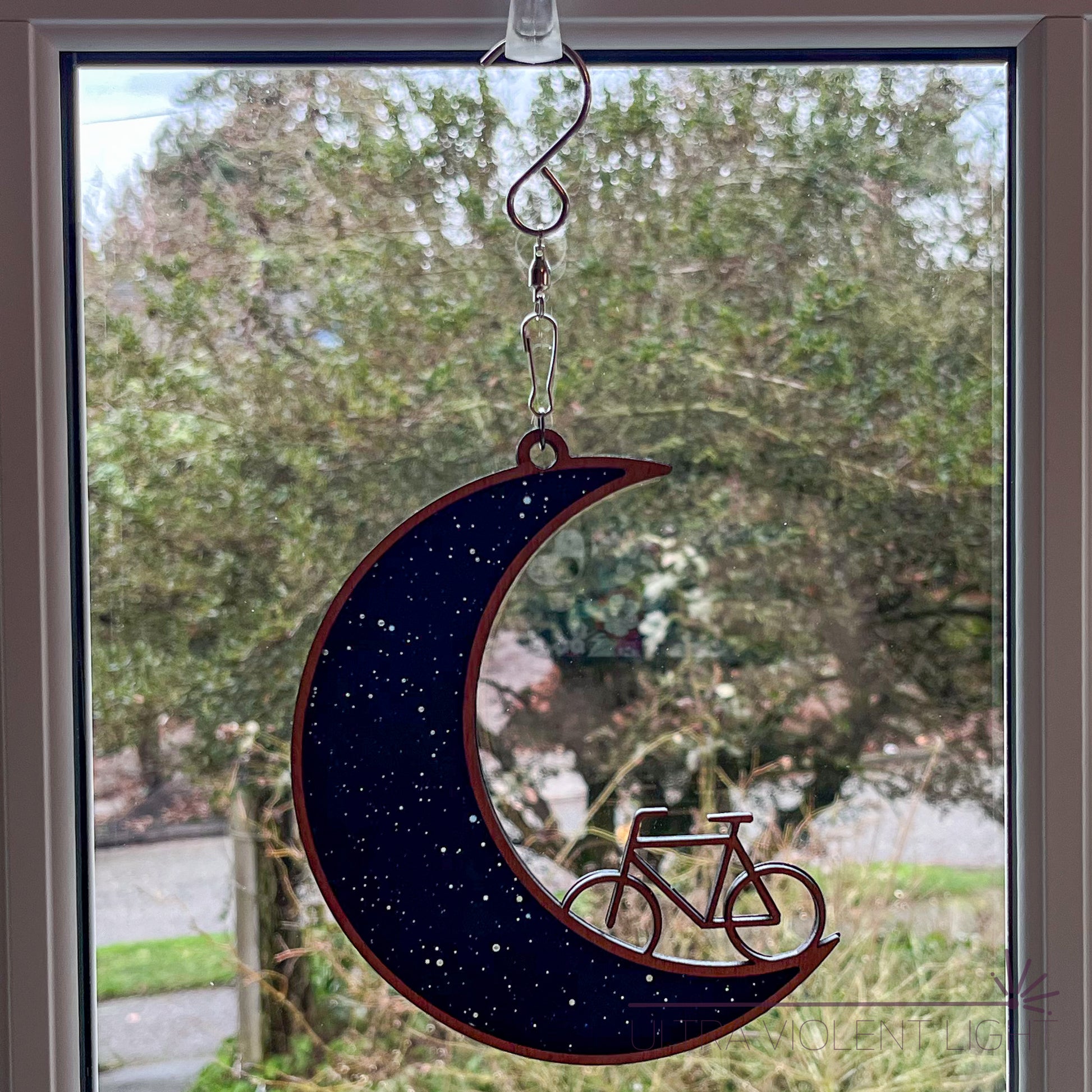 Do you dream of riding your bike? This suncatcher is more of a "moon catcher": The stars are the only part that let the light through.