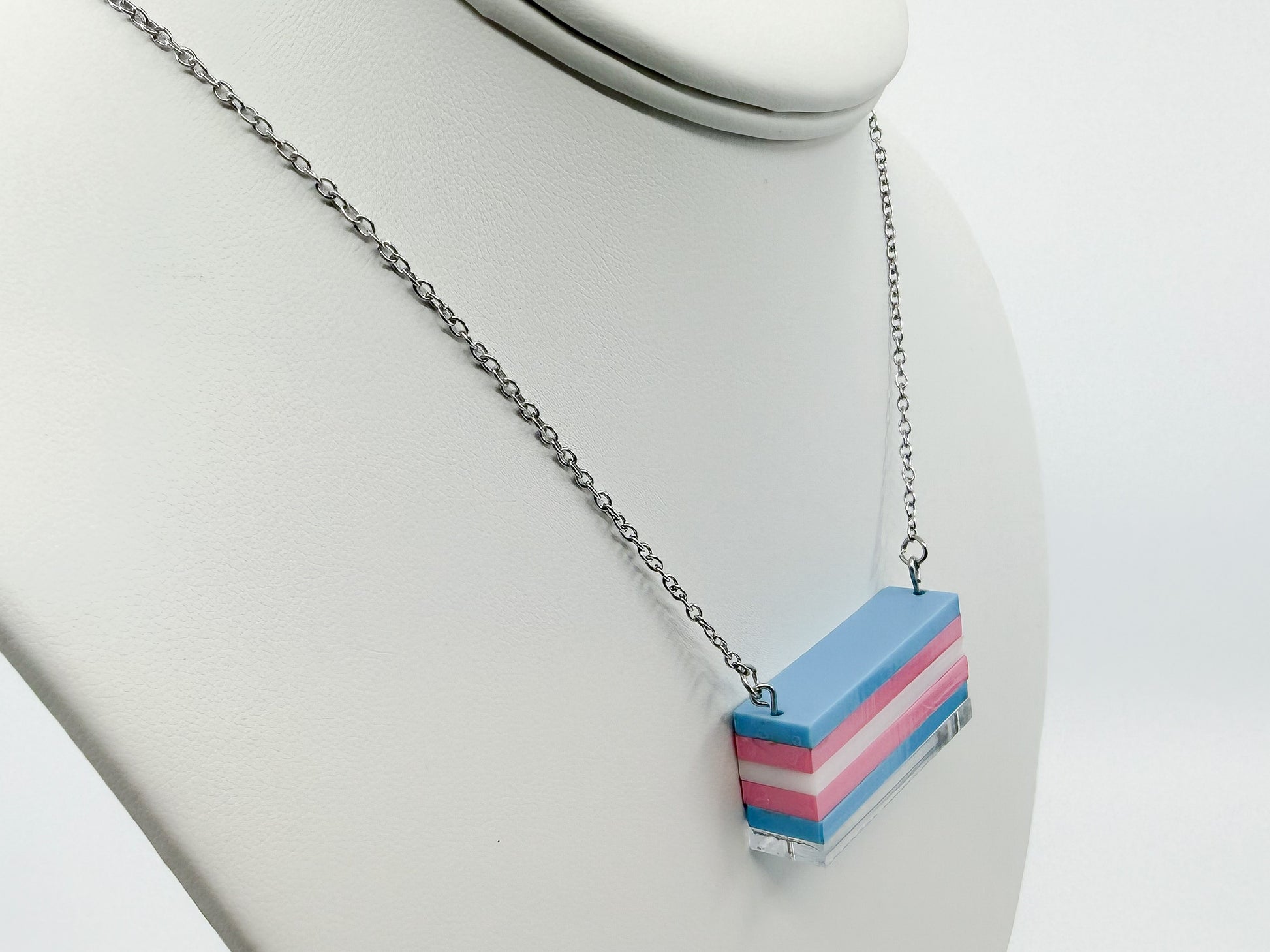 Trans pride flag necklace, transgender flag jewelry, protect trans kids necklace